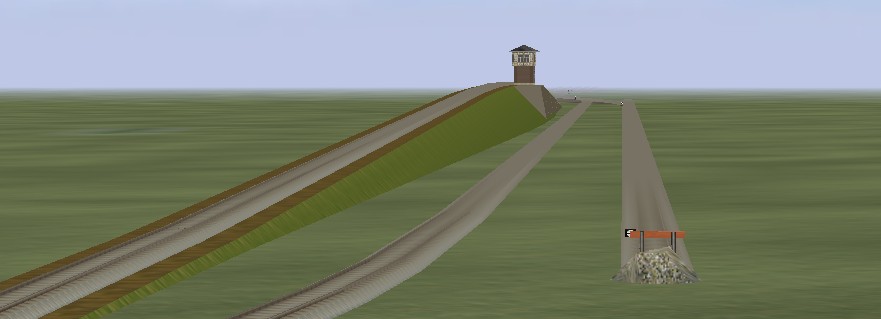 Nach dem geraden Gleisstück der Weiche beginnt der Ablaufberg mit dem Bahndamm BD1Gr_SteigLang+1Proz,