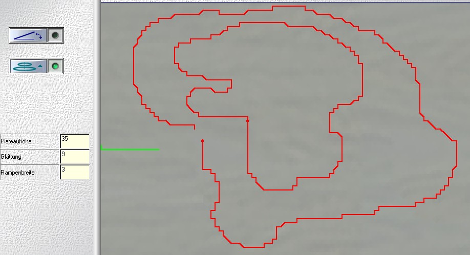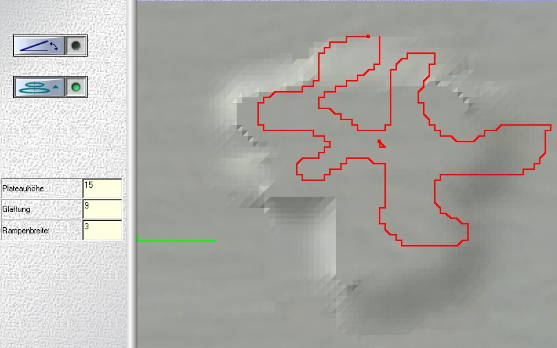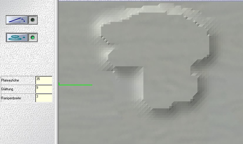 Im Beispiel nehmen wir eine Plateauhöhe von 35 und eine Glättung von 9. Da unser Tunneleingang in Richtung
