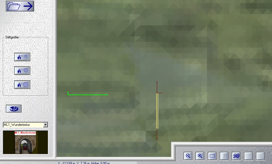 Wenn der Tunneleingang so aussehen sollte, wird eine Textur, hier Gras1, auf den Boden gesprüht. Das