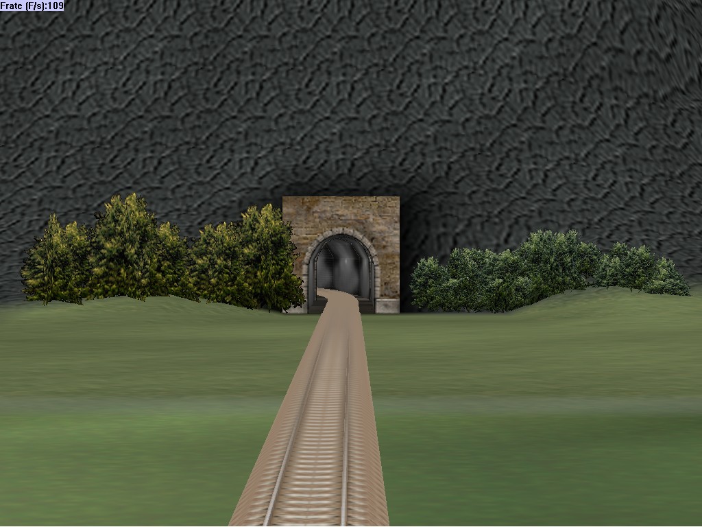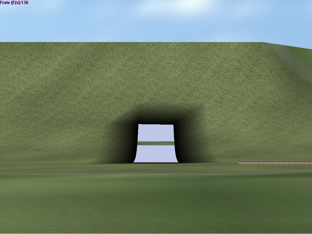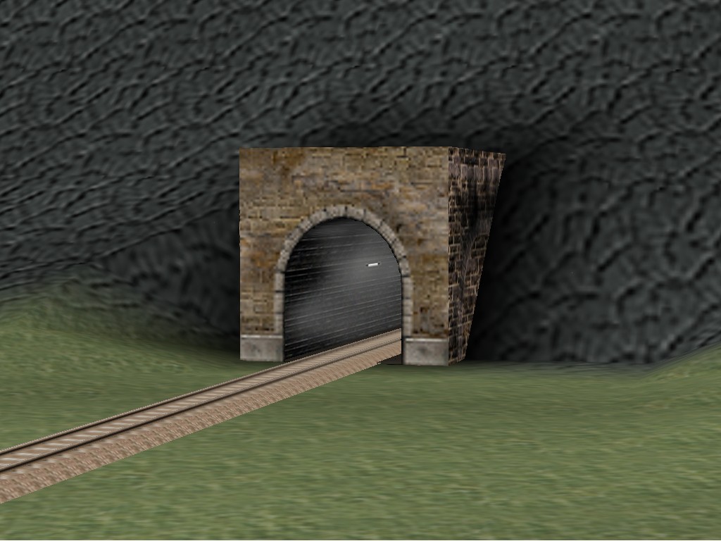 hoch, so daß es sich mit dem Tunneleingang gut abdecken läßt. Der Berg sieht in der 2D Ansicht noch ziemlich