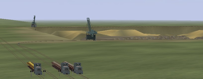 Die Grube habe ich rechteckig gemacht ( besseres Verlegen der Gleise am Grubenrand ).