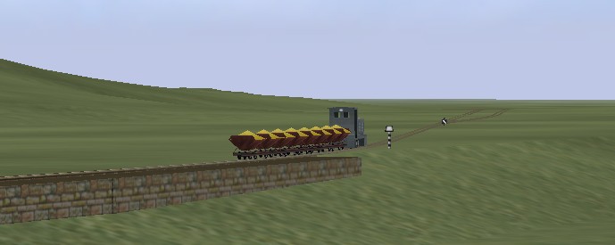 Schotterwerk. Durch ein dort kurzes Anhalten der Feldbahnen soll der Entladevorgang simuliert werden. Der nun