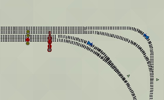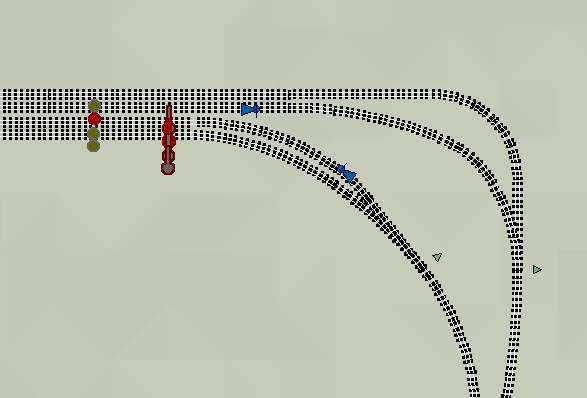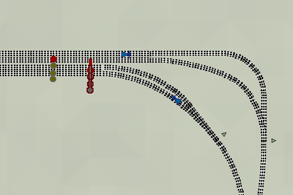 Dabei löst er die 4. Feldbahn wieder aus. Diese fährt nun durch Kehrschleife zurück zum 2. Wartegleis von