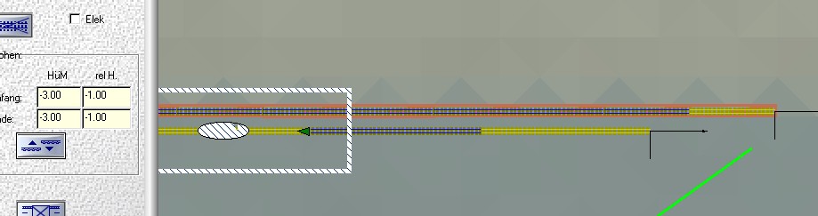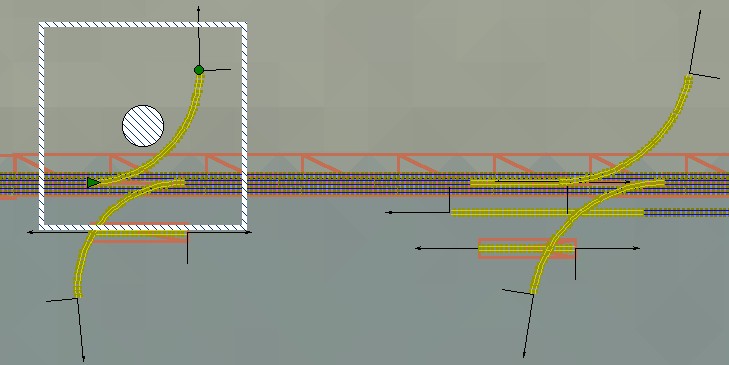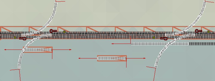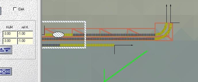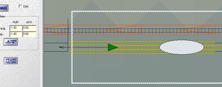 beiden Gleise und löscht diese. Das Gleis wird auf -1.0 m abgesenkt,
