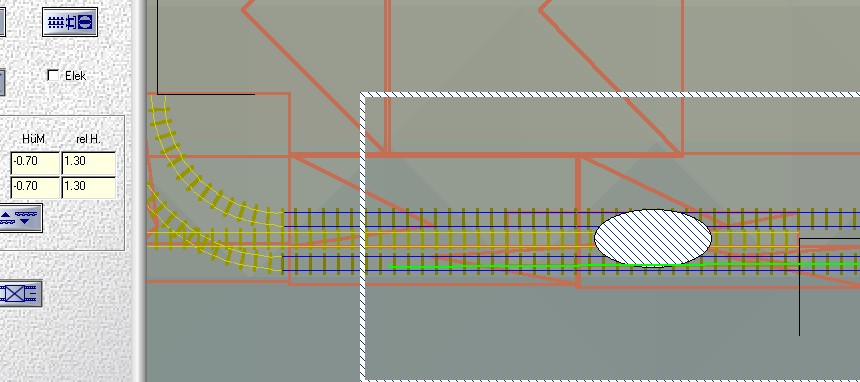 An die nun entstandenen Enden werden gebogene Gleisstücke angelegt ( kommen später alle weg ).