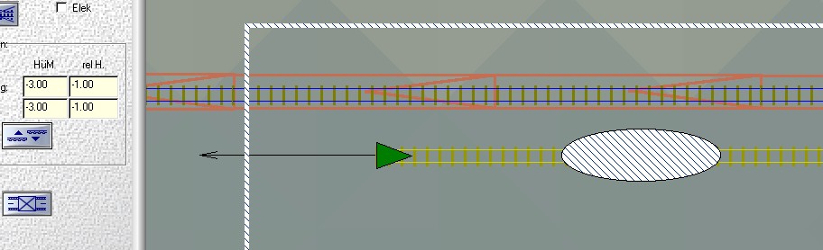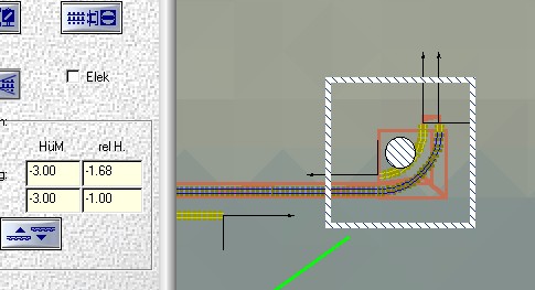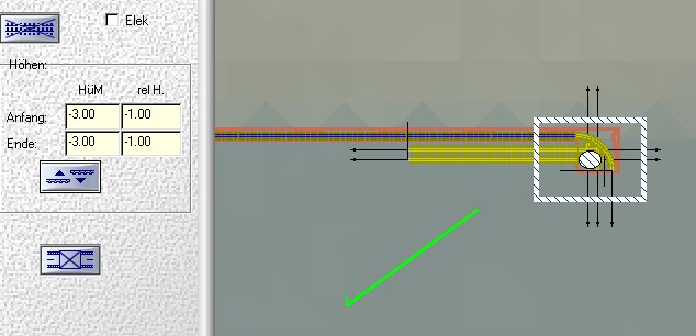 Umschalten in den normalen 2 D-Modus, damit man die Höhenangaben vergleichen kann, die Krangleise
