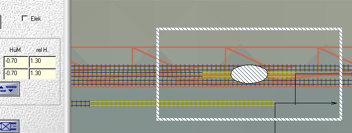 Das erste Krangleis kommt hier auf eine Höhe von -0.70 m,