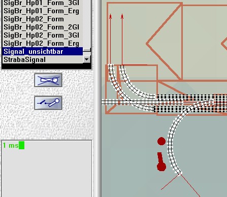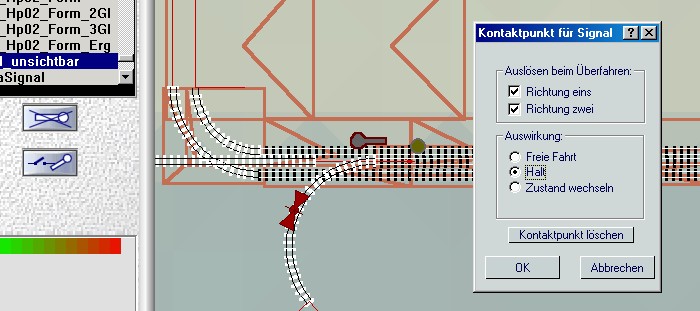 Jetzt werden die unsichtbaren Signale und Kontakte für die Schaltung Rot auf