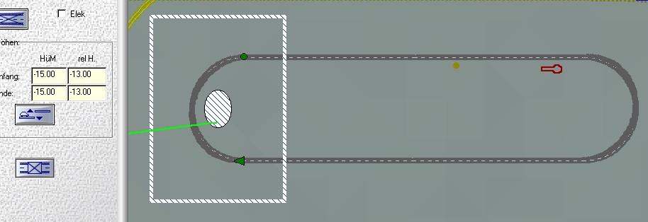 Ebenso wird bei dem Gleis verfahren, Kreis bilden, Signal mit Kontaktpunkt, davor Stopsignal.
