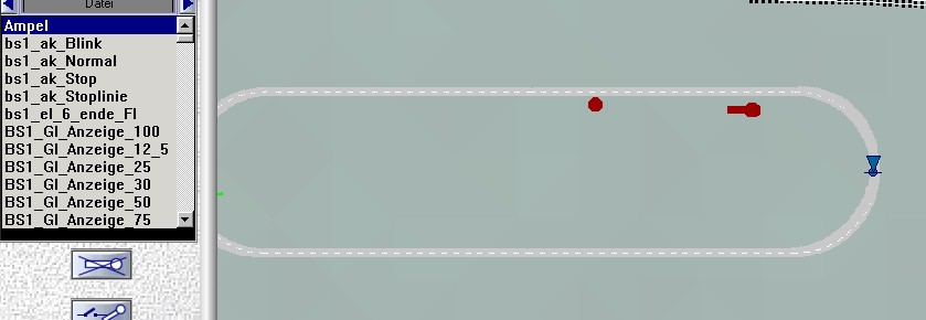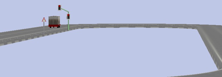 und zwar auf -15.00 m. Eine Ampel und ein Kontaktpunkt für die Rot-Schaltung werden eingesetzt, der LKW aufgestellt