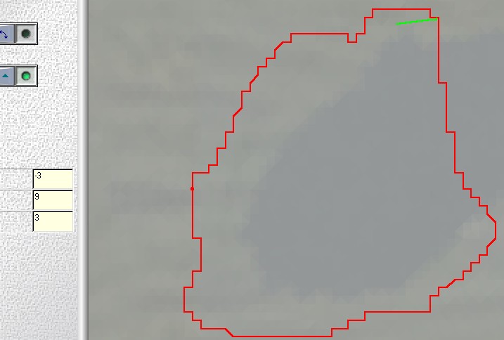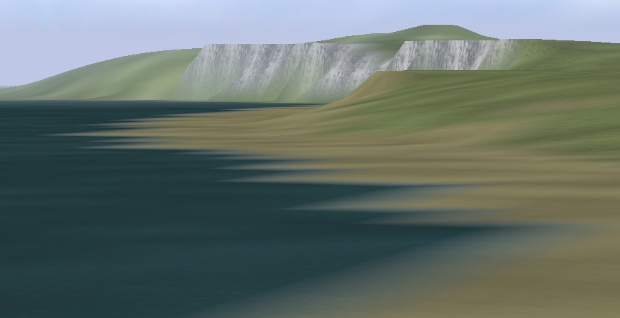 Anschließend kamen Hügel und kleinere Berge hinzu, die dann mit " Fels 6 und Gras 1 " besrüht wurden.