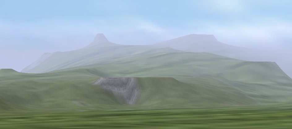 bei der Felsnische hinkommen, der Plateau-Bahnhof soll im Hintergrund zwischen den beiden Erhebungen liegen.