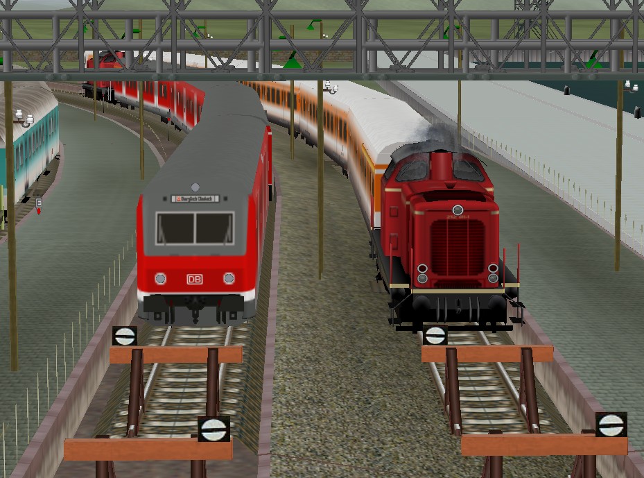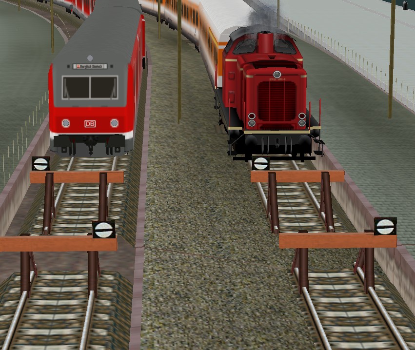 Mit Prellbock-Signalen werden die 4 Gleisenden abgesichert, was so aussehen könnte.